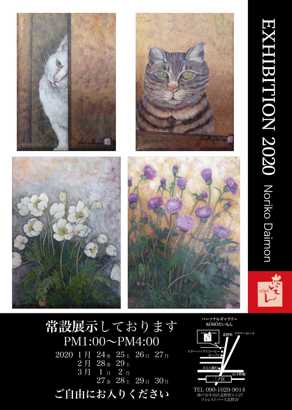 常設展示のお知らせ 公開済み: 2020年2月4日更新: 2020年2月4日作成者: だいもん紀子カテゴリー: NEWS だいもん紀子の作品展を行っております。 タイトルは猫と花 PM1:00 〜PM:4:00 2月 28日(金) 29日(土) 3月1日(日)2日(月)27日(金)28日(土)29日(日)30(月) 無料で入場いただけます。 北野坂スターバックス 山側路地裏 TEL : 090-1029-9014 住所 : 神戸市中央区北野町3-1-27 フォレストパース北野 パーソナルギャラリー KOBOだいもん 関連記事 永らくご迷惑をおかけしました、時々ギャラリーOPENします 永らくご迷惑をおかけしました。 7月1日に退院いたしました。 時々ギャラリーOPENします。 美味しいコーヒーをご用意してお待ちしております。 公開済み: 2021年7月29日更新: 2021年7月29日作成者: だいもん紀子カテゴリー: NEWS 久美浜 時々ギャラリー&カフェ OPENしてます 2023年10月〜2024年1月 2023 だいもん紀子「初秋から初冬の花展」時々ギャラリー&カフェ OPENしてます。 美味しいコーヒーをご用意してお待ちしております。 公開済み: 2023年8月31日更新: 2023年8月31日作成者: だいもん紀子カテゴリー: NEWS 時々ギャラリー&カフェ OPENします 時々ギャラリー&カフェ OPENします。 美味しいコーヒーをご用意してお待ちしております。 公開済み: 2022年3月2日更新: 2022年6月23日作成者: だいもん紀子カテゴリー: NEWS